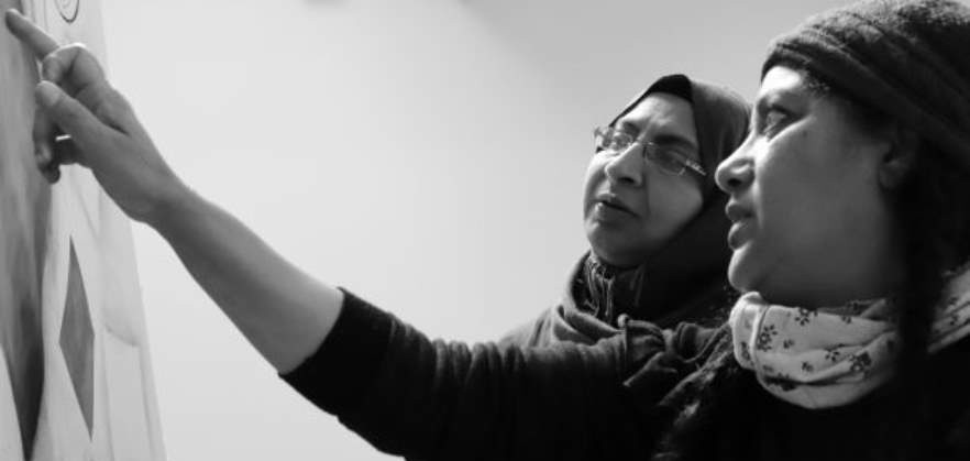 In conversation with artist Roohia, who delivered workshops in Arabic Calligraphy to the Srijoni women's peer support group based in South Tyneside (facilitated with pleasure by Sangini (a friend)), she explained how rewarding this work has been for her on a personal level, as she has been able to observe the growth of the women within the group and watch their confidence grow with each session. The success of the group and their involvement in the exhibition is an opportunity to celebrate the visibility of Muslim artists and in turn, inspire the women within the group to pursue their passions.