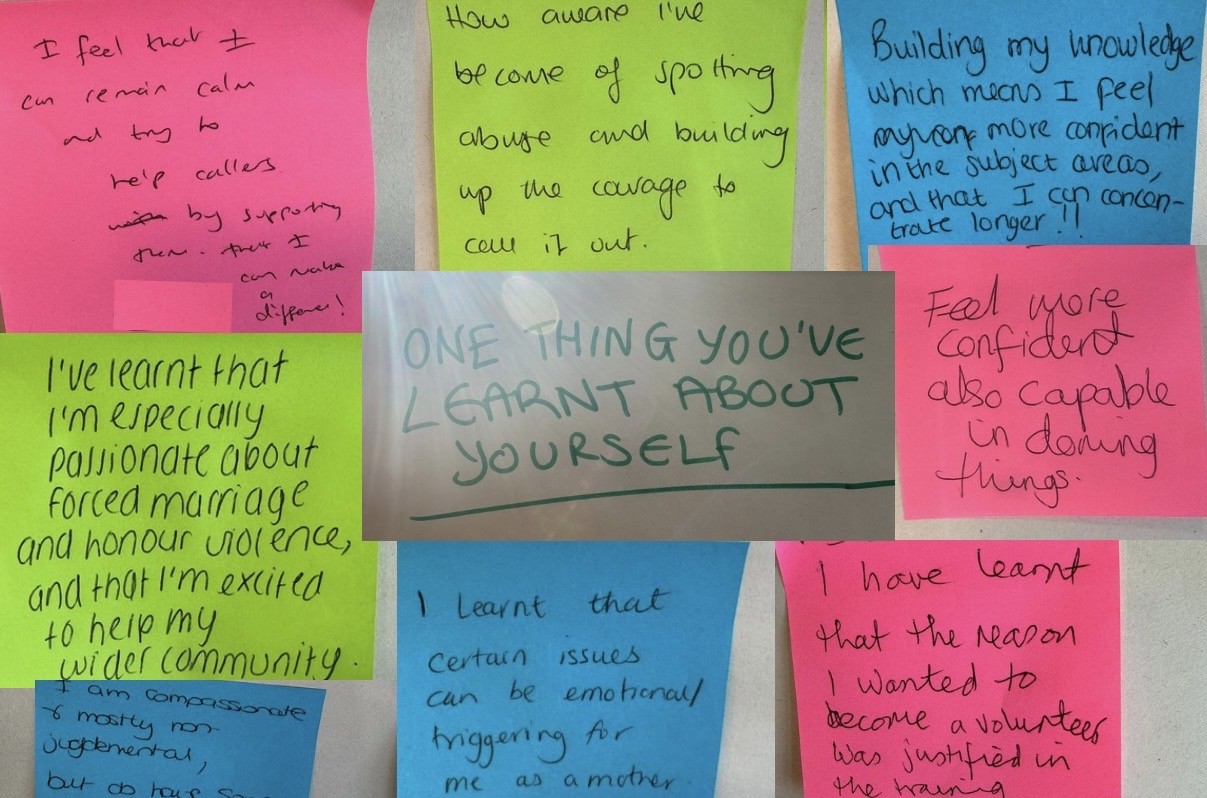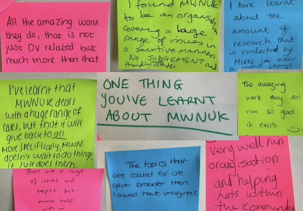 Here are a couple of images which capture what our volunteers learnt about MWNUK and what they learnt about themselves following their time so far at our organisation.